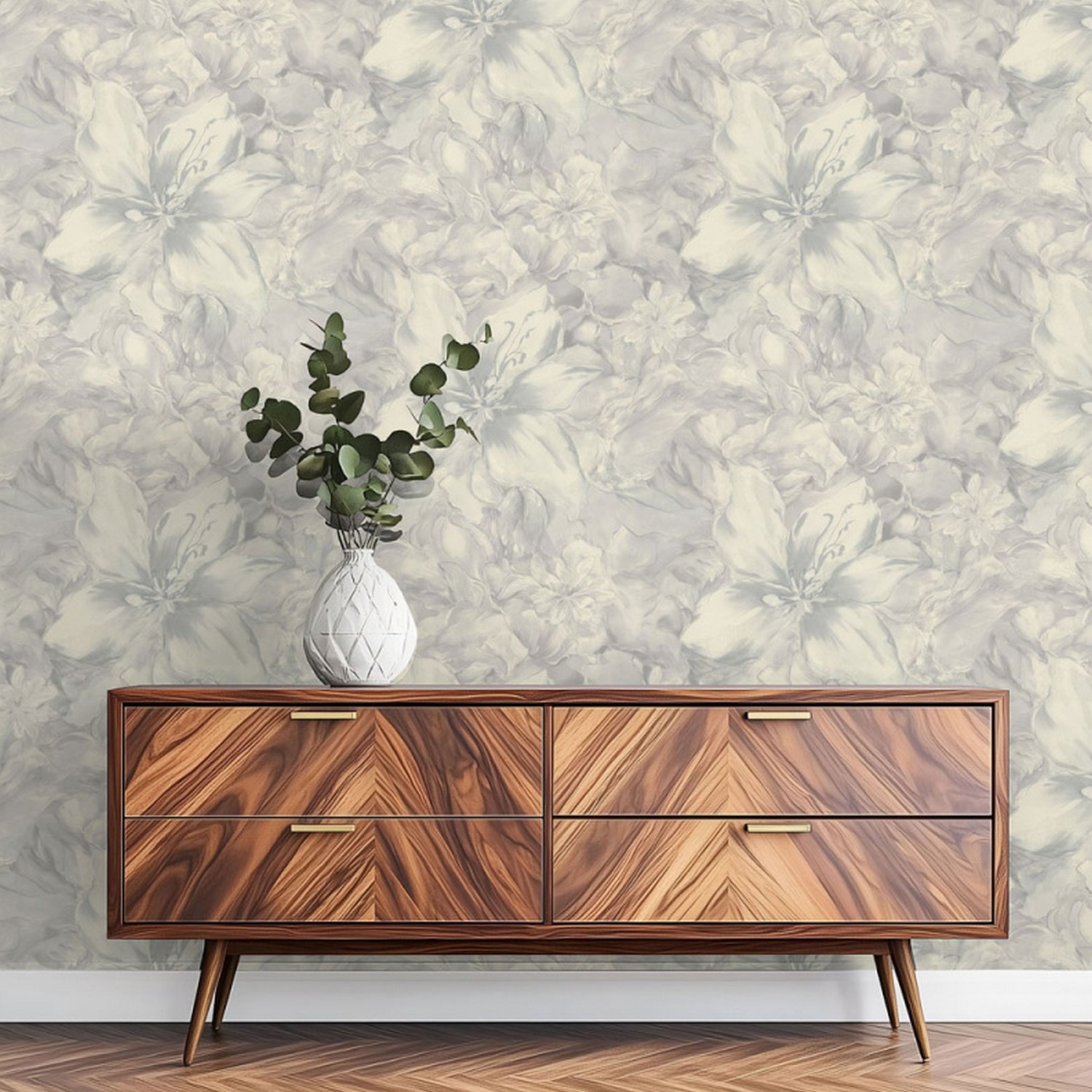 Фон коллекции «Fern» выполнен в спокойных пастельных тонах и имитирует текстуру рогожки, покрытую перламутром. Такое решение поддерживает основной мотив и придает всей коллекции атмосферу уюта и комфорта.