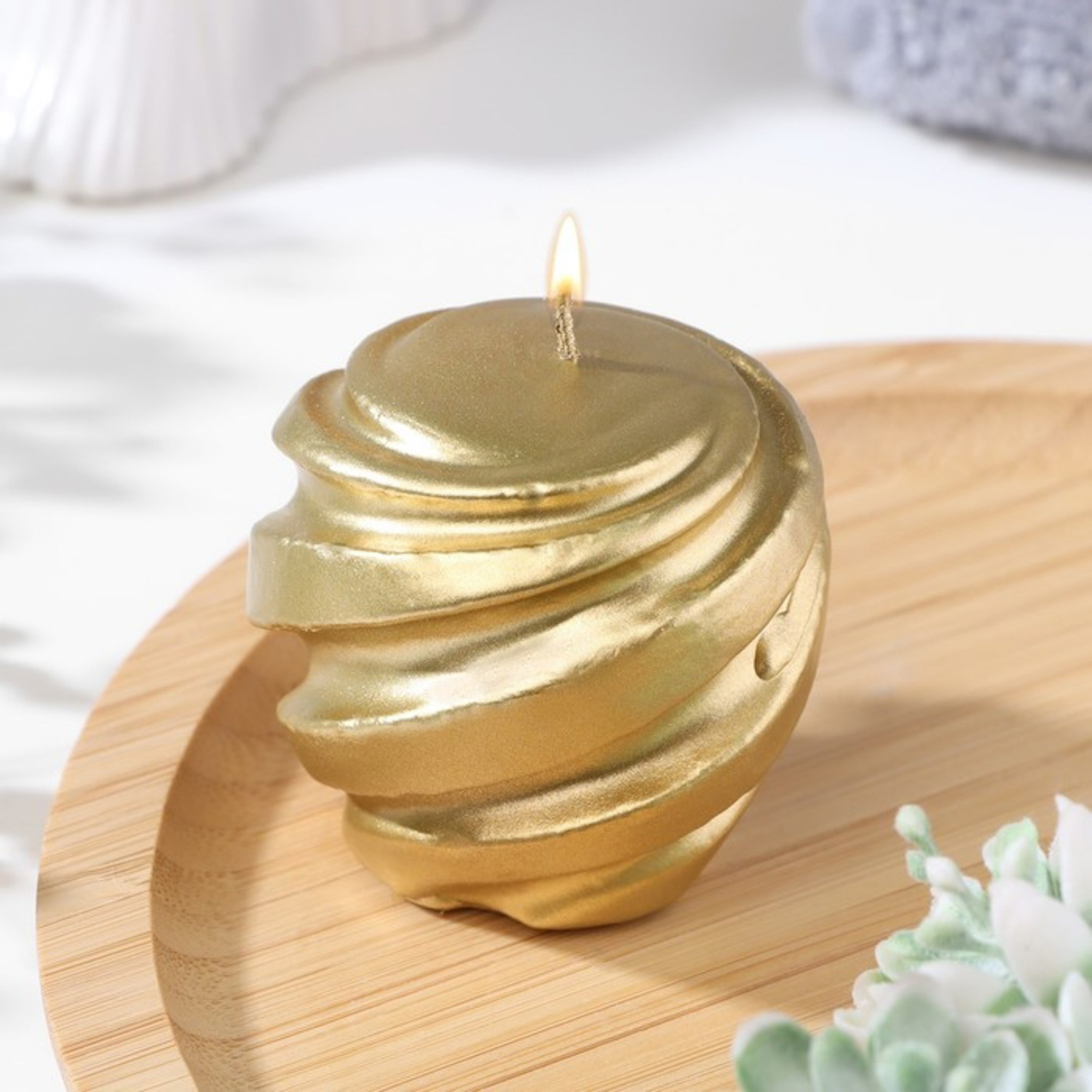 Свеча фигурная "Шар спиральный", 5,5х5,5 см, золото 9086820