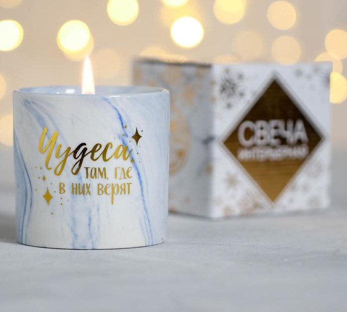 Свеча интерьерная «Чудеса там, где в них верят», мрамор, 7,6 х 7,6 х 8,2 см   4708068