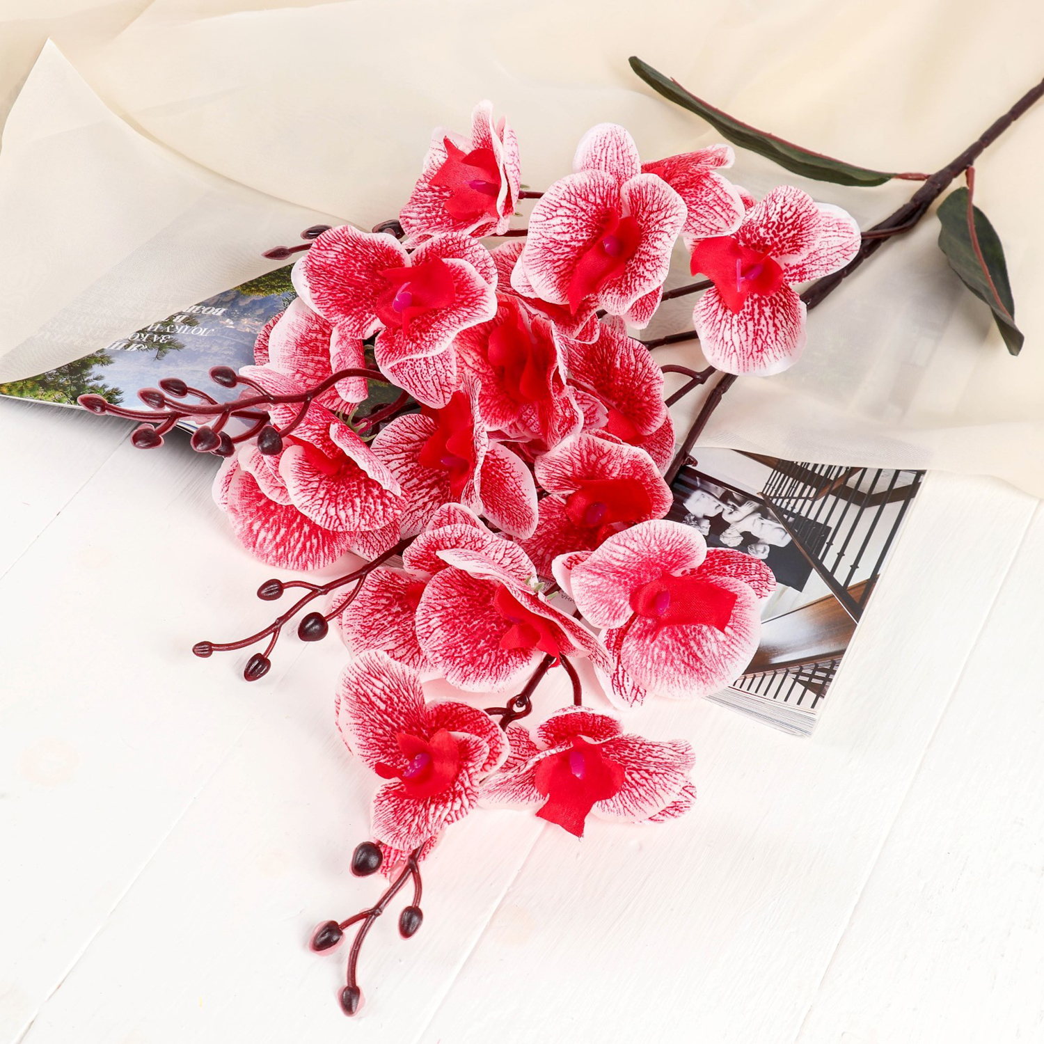 Цветы искусственные "Орхидея фаленопсис" 8х80 см, красный 4301699