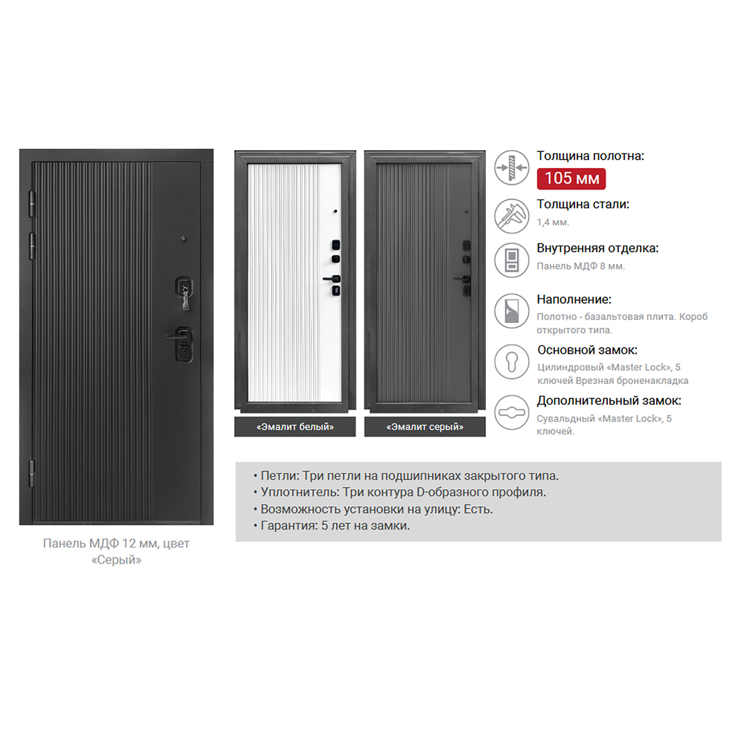 Дверь входная 2050х860х105 мм Форпост Спарта, левая, эмалит серый