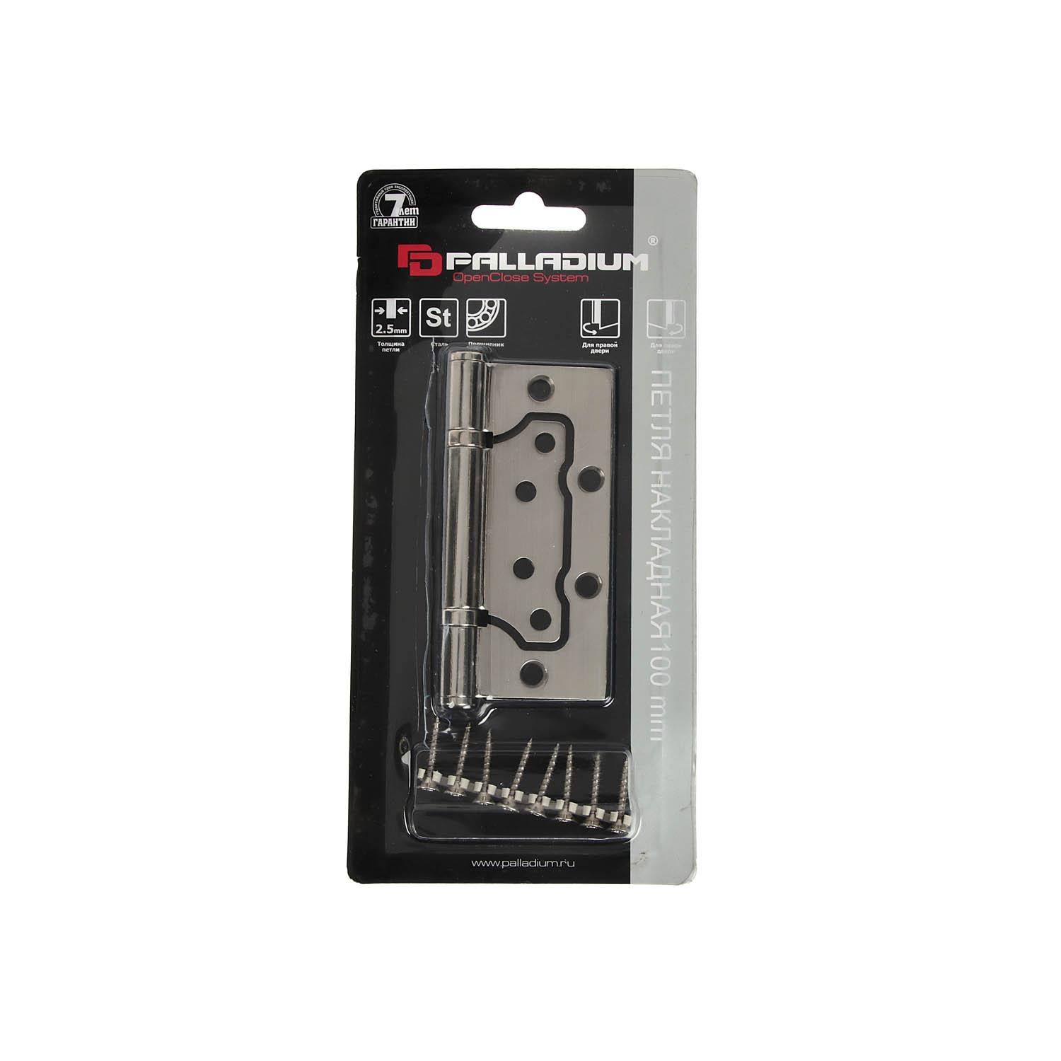 Петля без врезки 100*75*2,5мм НИКЕЛЬ матовый SN PALLADIUM *1/50/100