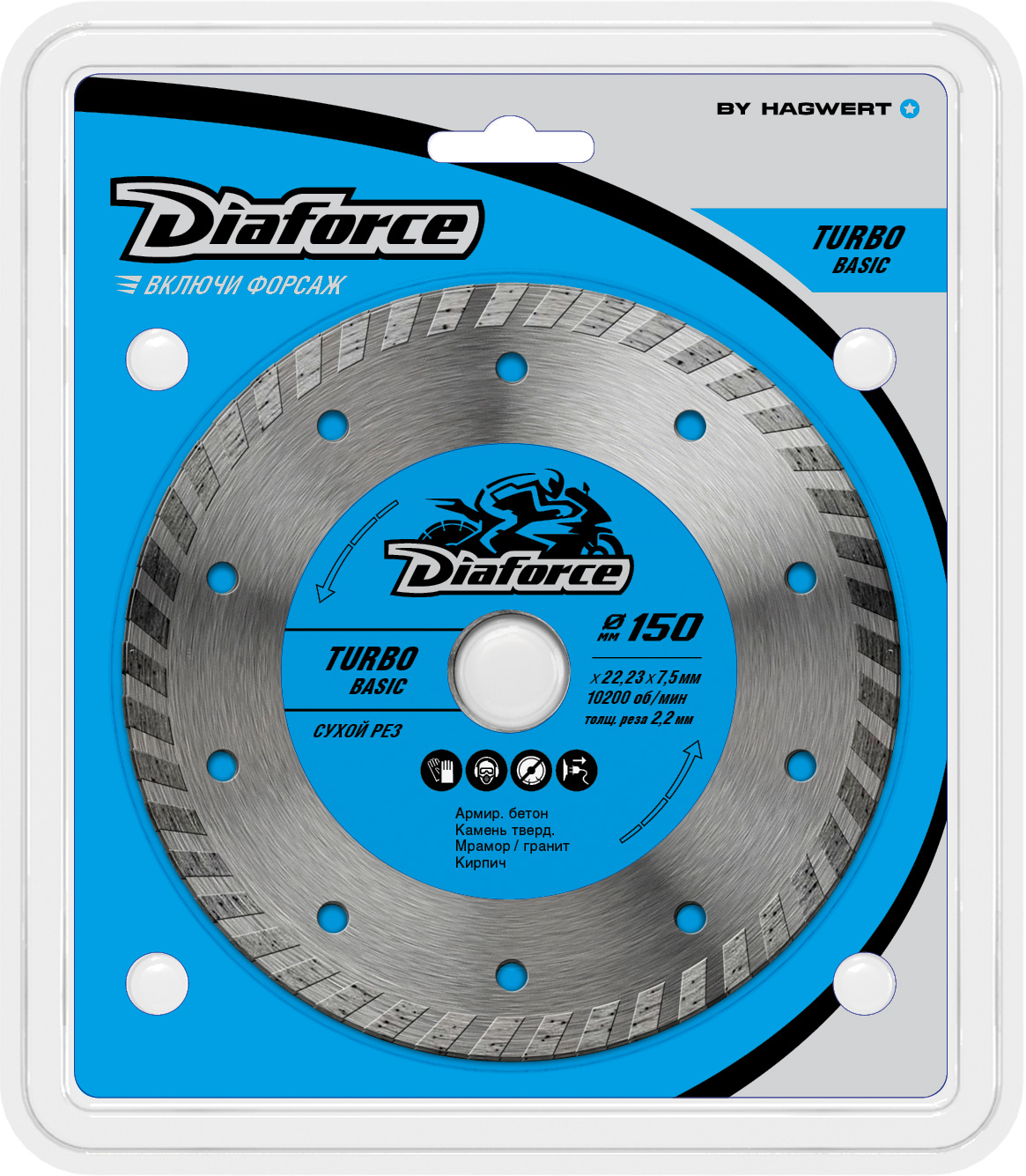 Диск алмазный 150*22,23*2,2мм по железобетону ТУРБО сухой рез арт.511150 TurboBasic Diaforce*1/10/50
