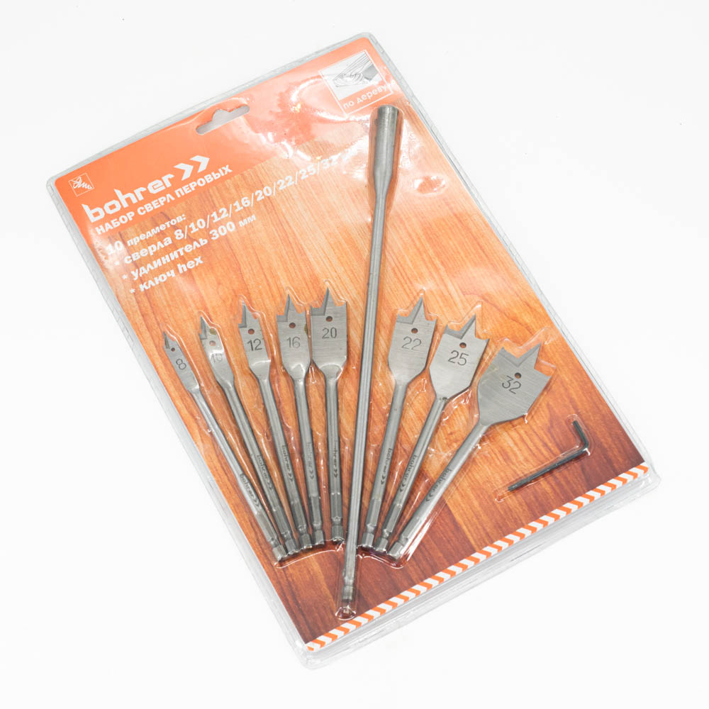 Набор сверел по дереву "Перовых" 8-10-12-16-20-22-25-32мм арт.35201001 Bohrer *1/10/40