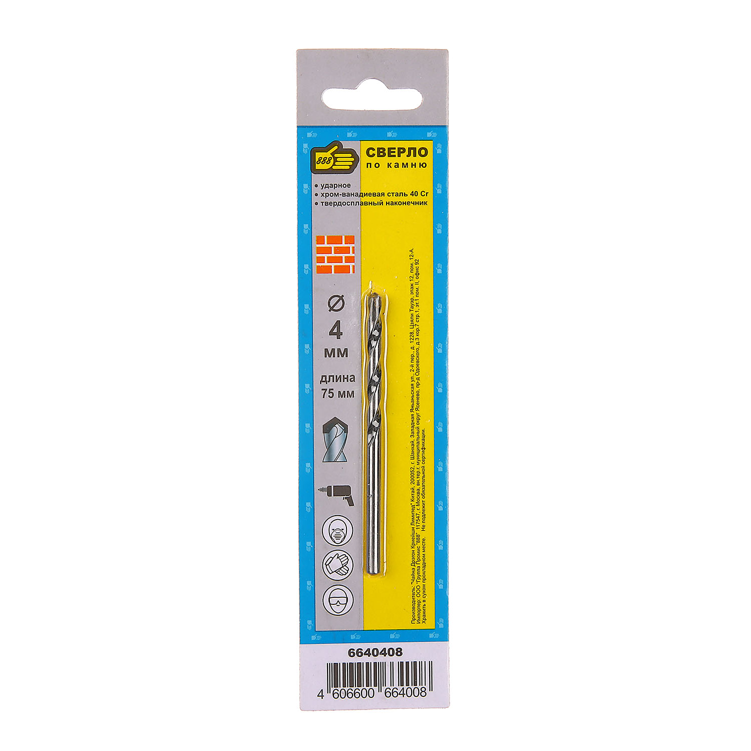 Сверло по бетону 4*75 "888" (арт.6640408) *10/100
