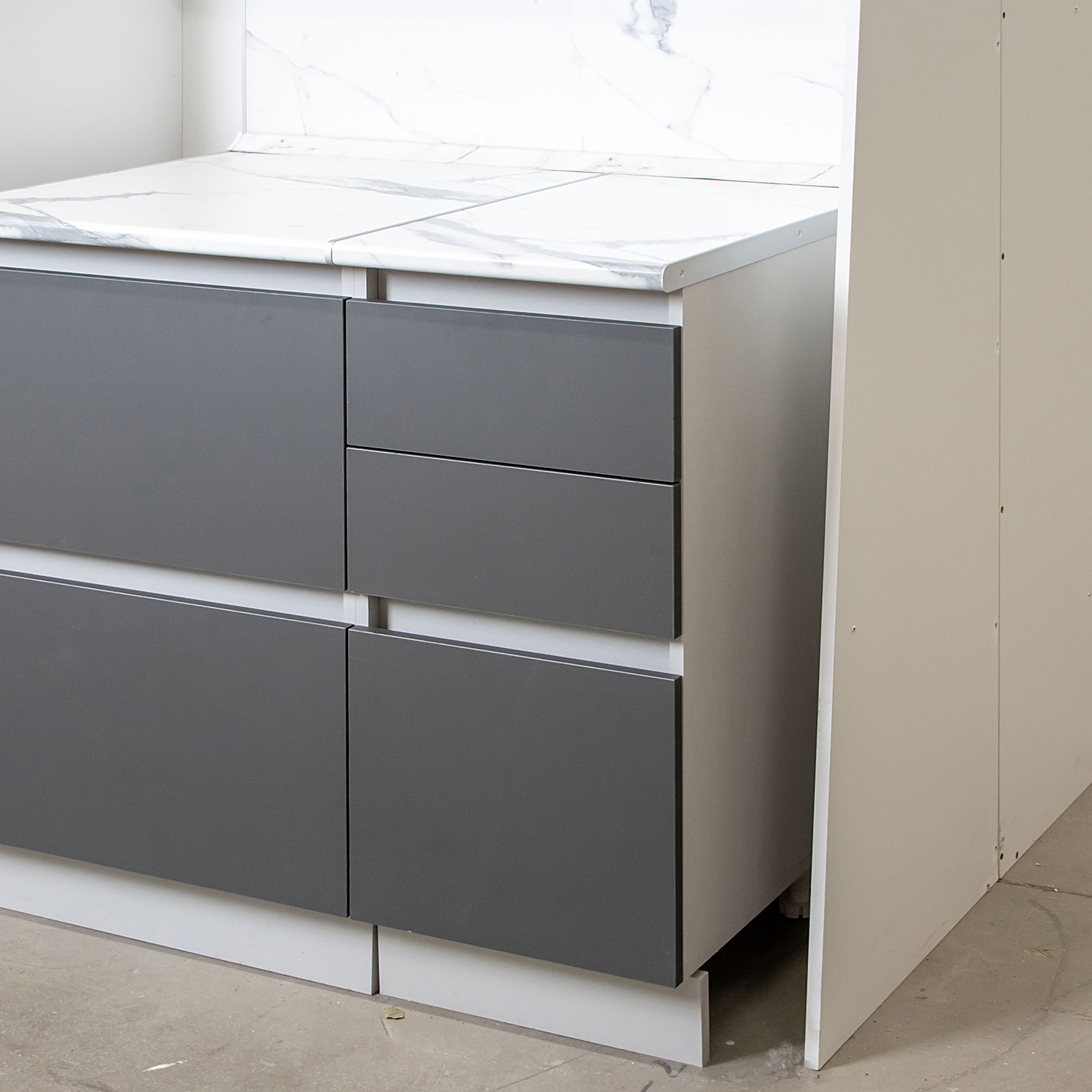 Шкаф напольный 400х850х600 мм BROZEX-WOOD Серый лед, с тремя ящиками, серый / графит