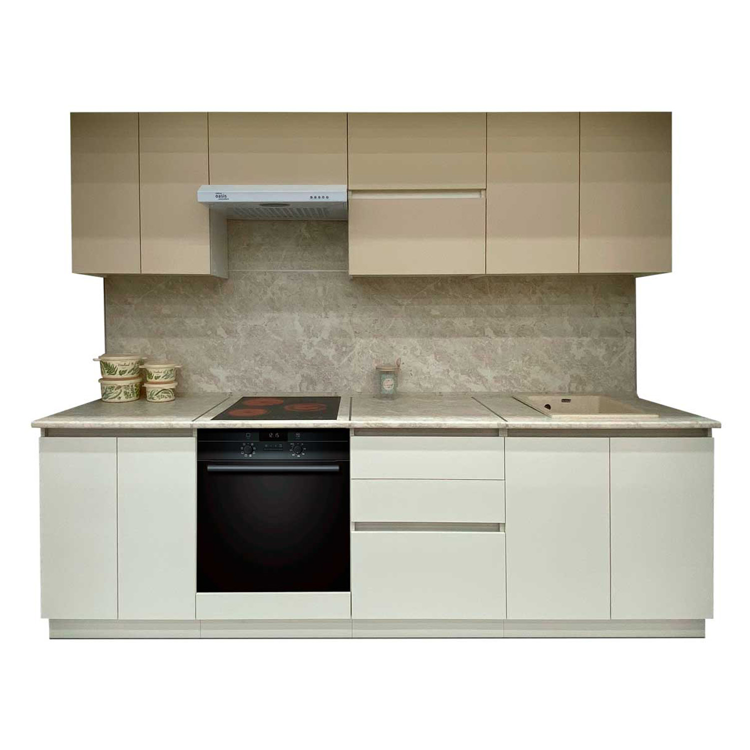 Шкаф навесной 800х676х290 мм BROZEX-WOOD Стиль, с двумя дверцами, белый / светло-бежевый