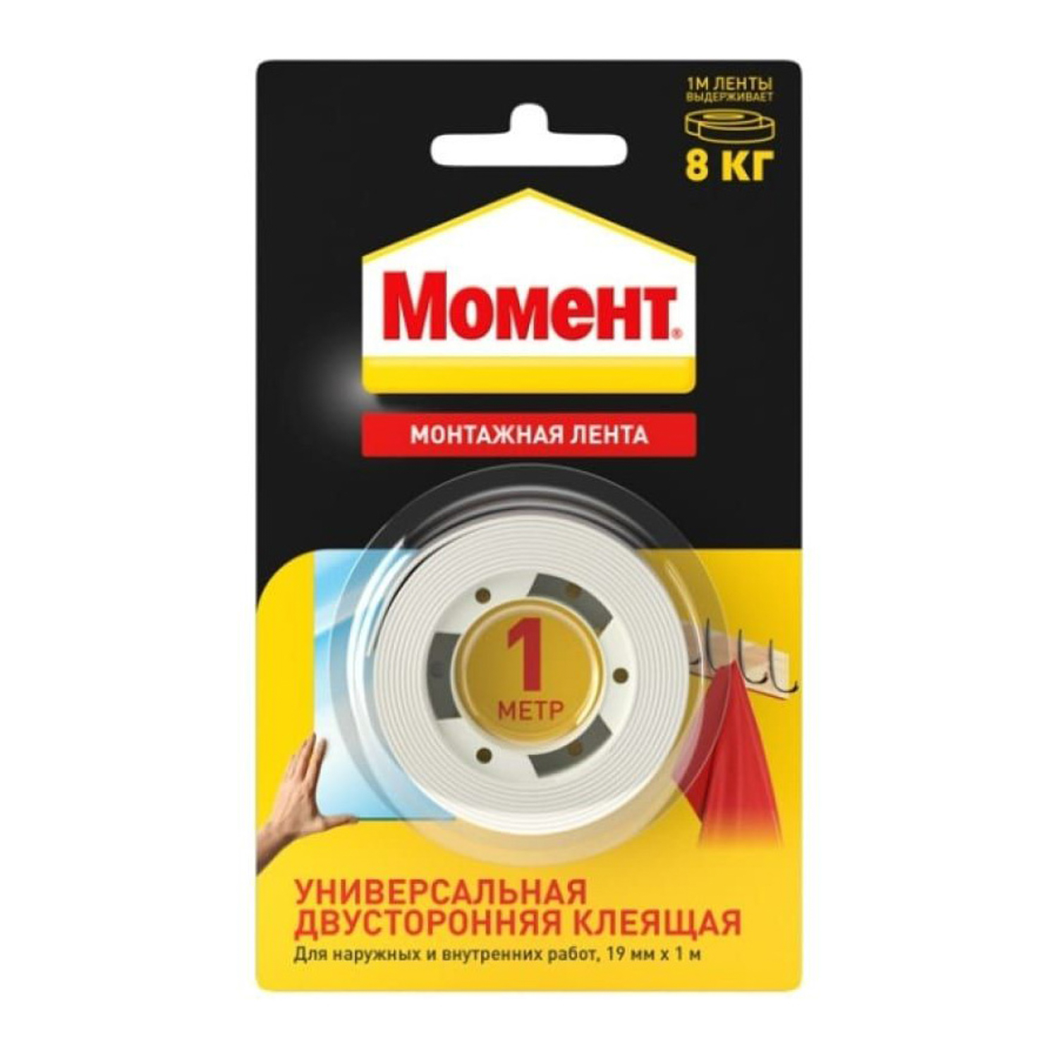 Лента клейкая двусторонняя 19ммх1,0м Белая 3001745 Момент (Хенкель) *1/10