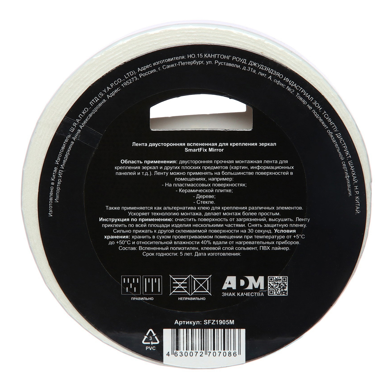 Лента клейкая двусторонняя на вспененной основе д/зеркал 19мм х 5м "SmartFix" SFZ1905M "W-CON" *1/10