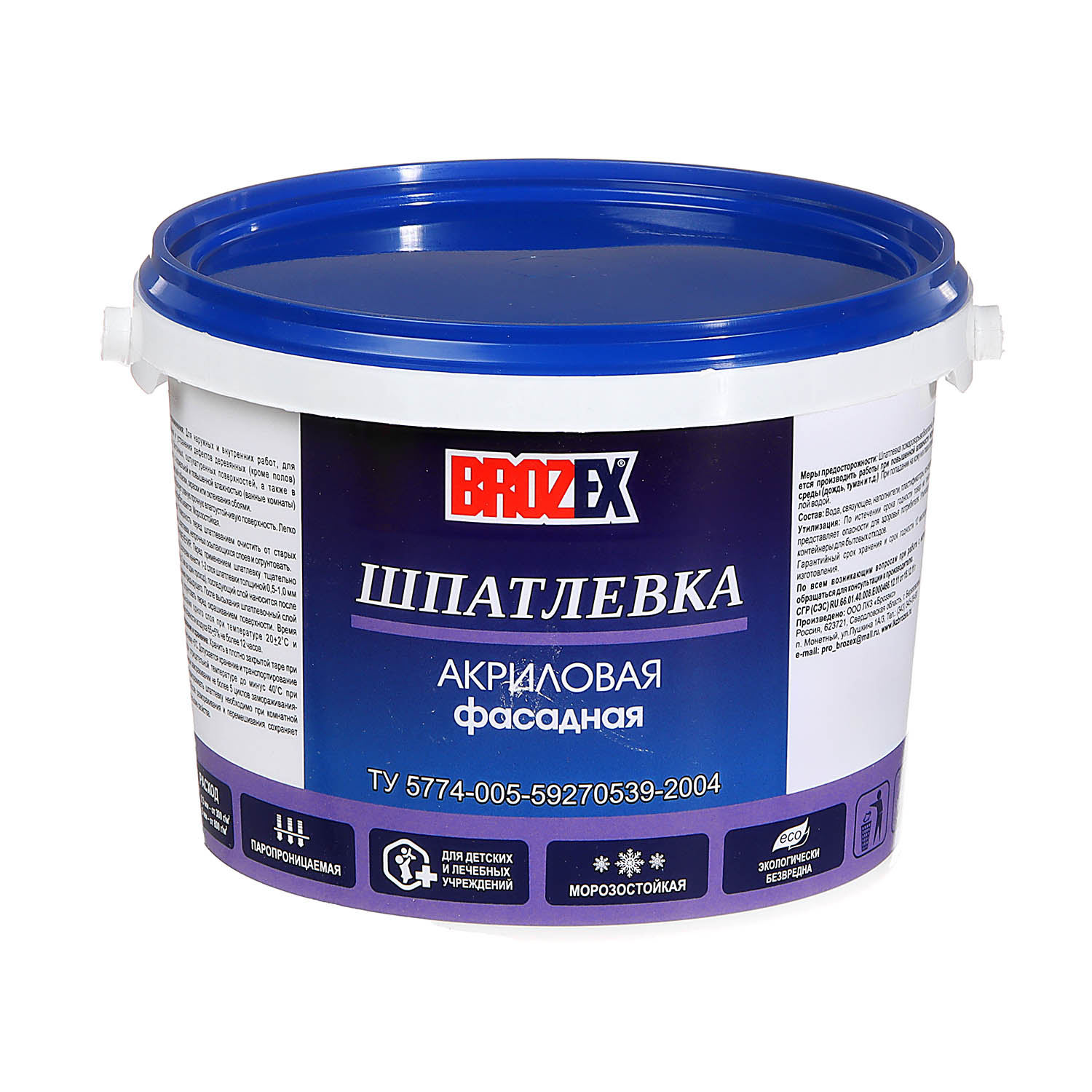Шпатлевка фасадная акриловая BROZEX 3 кг образует ровную прочную влагостойкую поверхность. Легко наносится и обрабатывается. Применяется снаружи и внутри помещений.