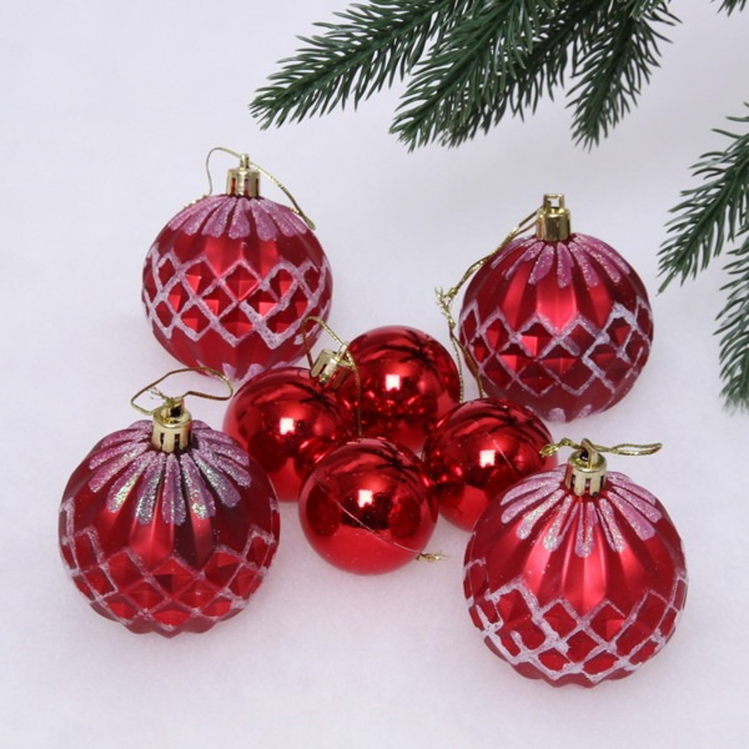 Новогодние шары 6/4 см (набор 8 шт) "Яркий восторг", Красный