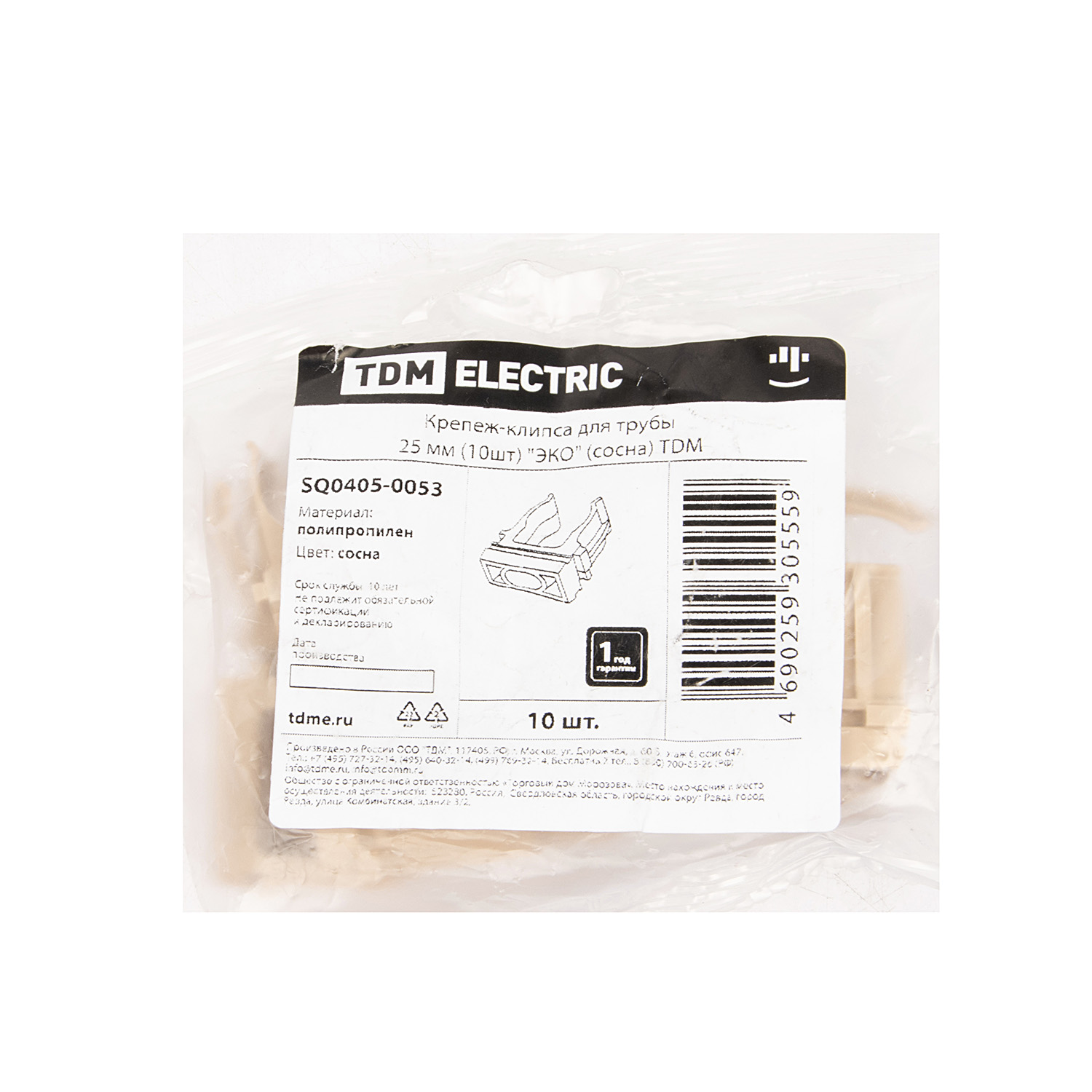 Крепеж-клипса d25мм для трубы "Эко" сосна (упак.10шт) TDM SQ0405-0053 *1/90