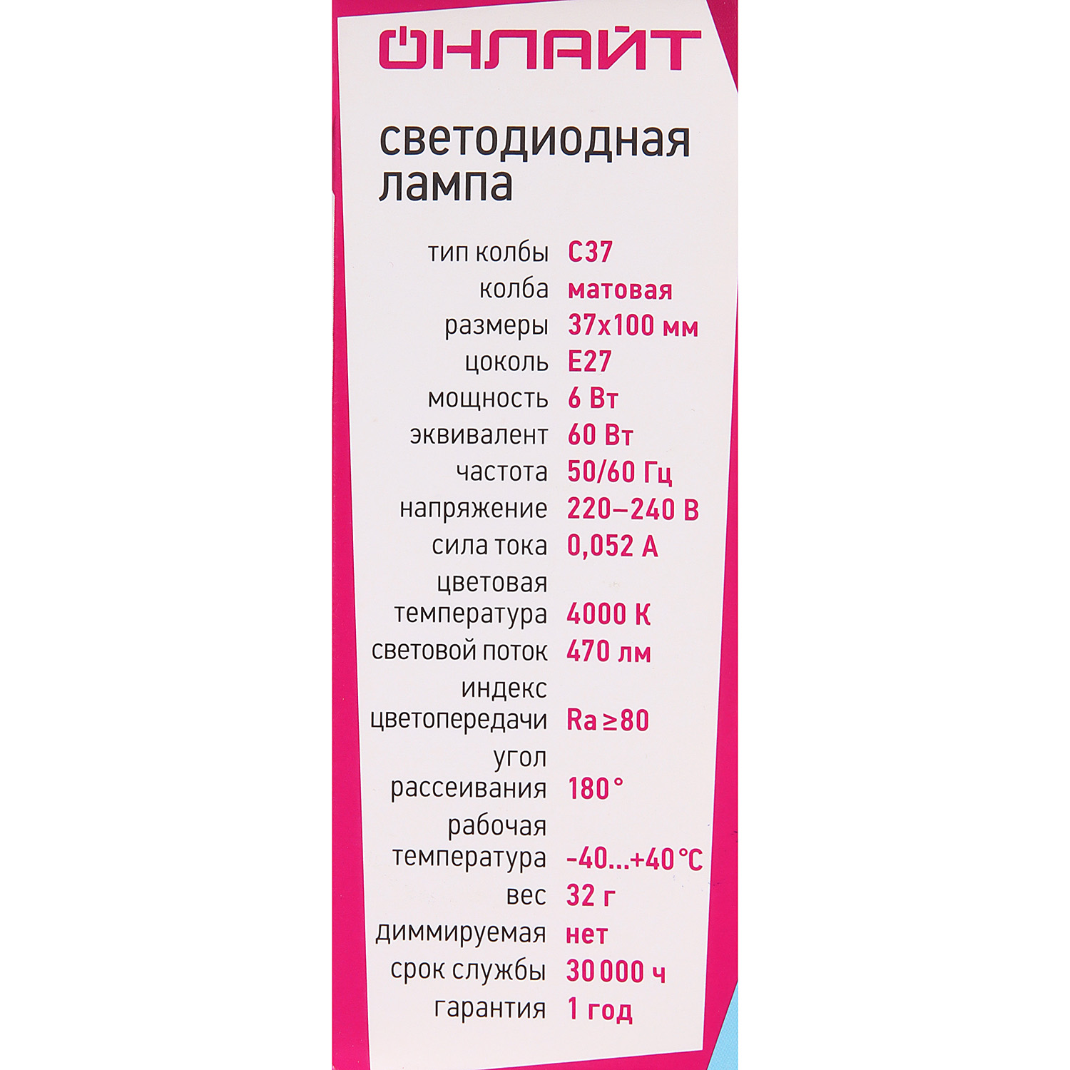 Лампа, паспорт