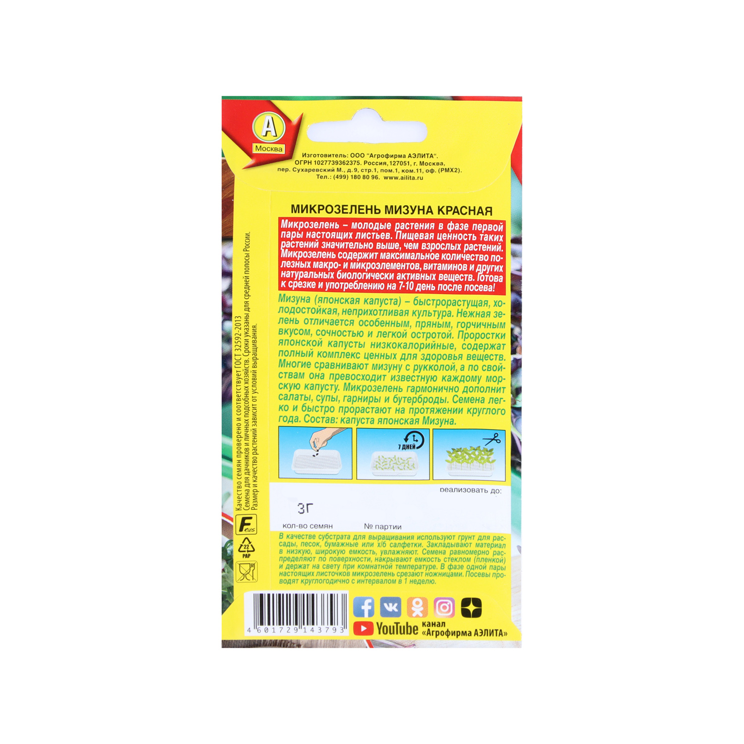 Микрозелень Мизуна красная 3гр Аэлита *10