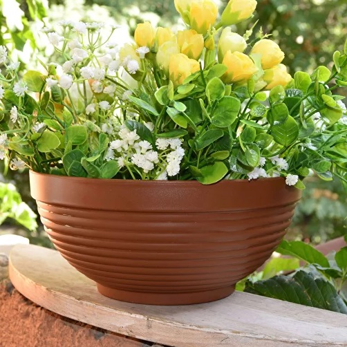 Кашпо пластм. "Парма" 9л d верха 340мм h140мм Терракот "5plast.ru" *1/10