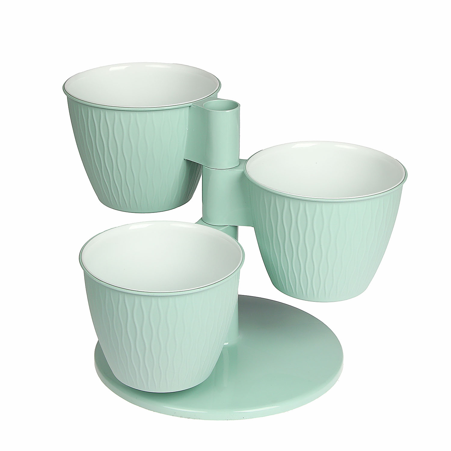 Кашпо-"Каскад" 3-х местная пластм. "Пирамида"  d верха 125мм h100мм со вставками Мята *1/10