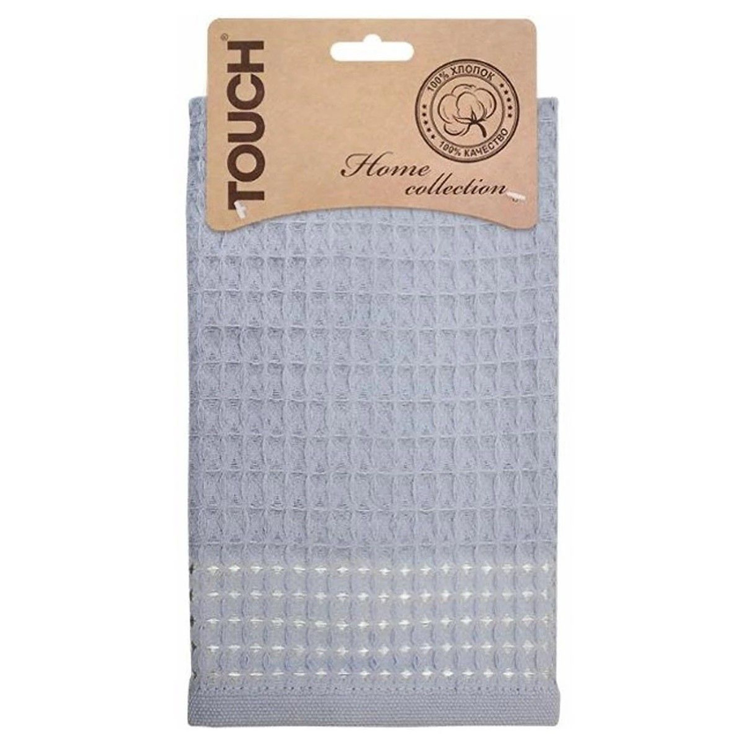 Полотенце вафельное 35*55см на хангере Крупная клетка атлантик 150г/м2 Touch *6
