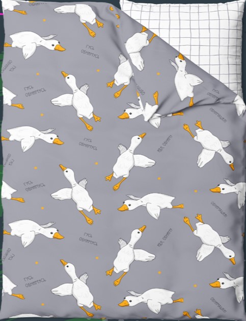 Комплект из натурального 100% хлопка плотной ткани (120 гр/м) прошел процесс мягчения, что придаёт материалу блеск и воздушную мягкость. Печать на современном оборудовании, использование качественных красителей позволят надолго сохранить яркость рисунка и поддержат отличный эмоциональный настрой. Рекомендуется перед первым использованием постирать с использованием кондиционера.