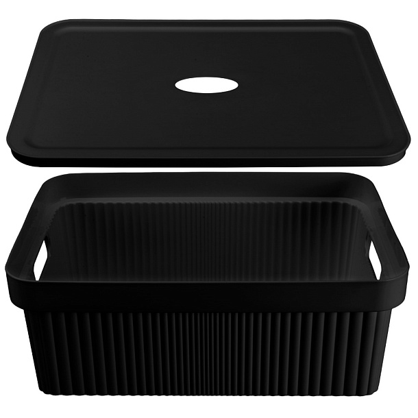 Контейнер для хранения Econova объемом 13 л — это практичное решение для порядка дома. Он выполнен из прочного пластика и оснащен специальной крышкой с отверстием, что обеспечивает циркуляцию воздуха. Благодаря ручкам в корпусе лоток удобно поднимать и переносить. Компактный контейнер легко помещается в шкаф или на полку, а стильный черный цвет делает его гармоничным в любом интерьере. Материал изделия не боится влажности, легко моется. Не содержит бисфенола А.