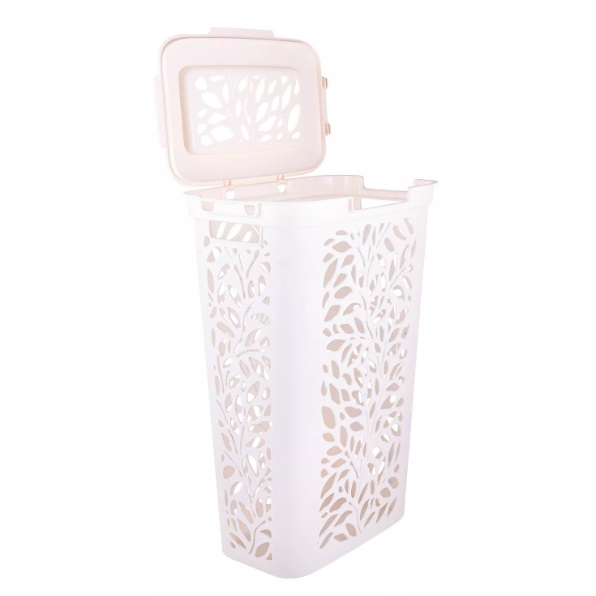 Корзина для белья пластм. 40л "Leaves" 635x275x440мм Молочный 49424 ("Плимербыт") *1/4