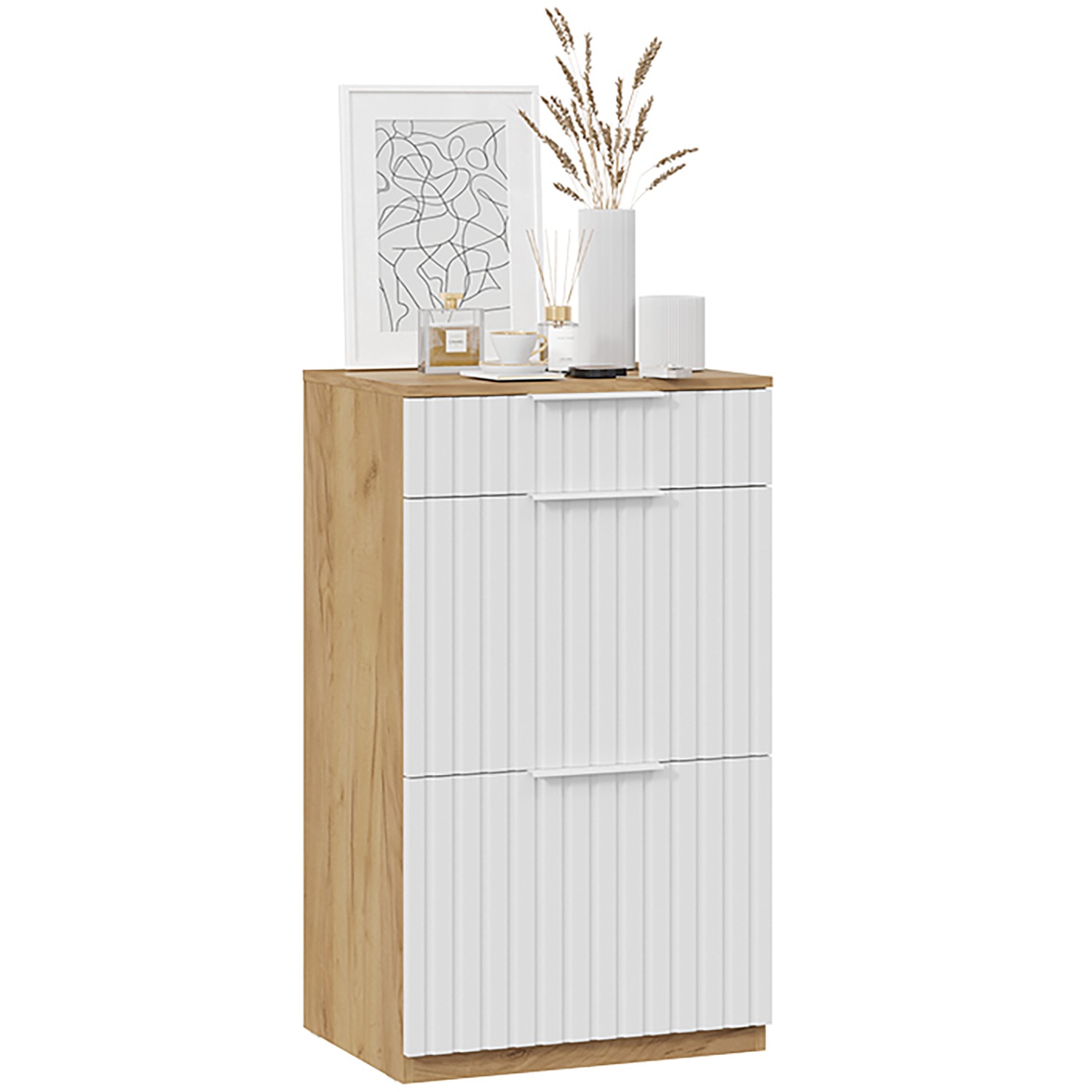 Набор мебели для прихожей ХИЛТОН тумба комбинированная 550мм исп.2.1 Дуб крафт золото/белый матовы*1