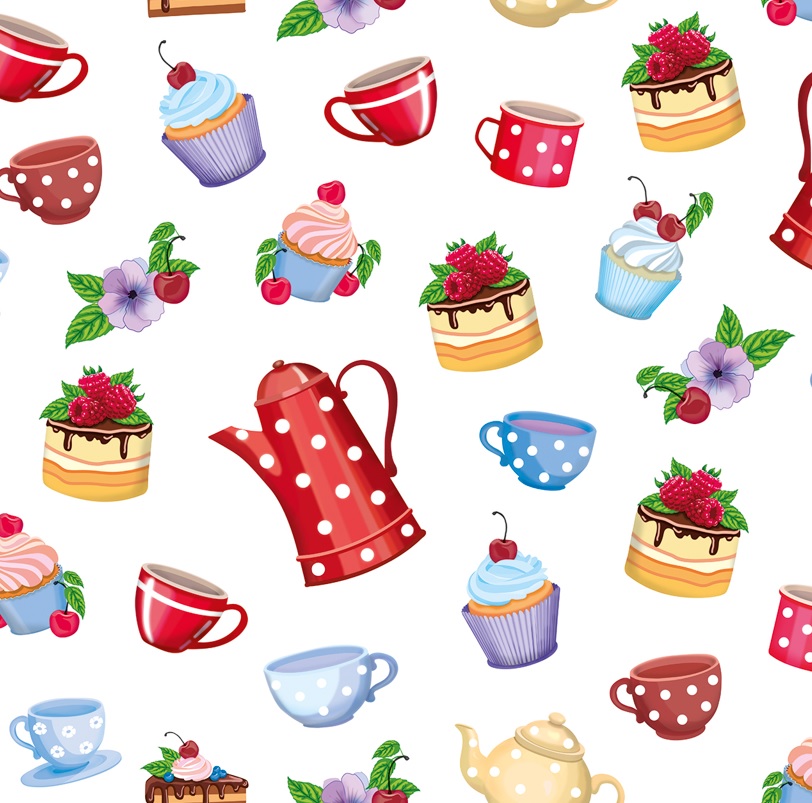 Клеёнка на нетканой основе "Мажор" "Чайная посуда и десерты" на белом шир.1,35м 595/0 "Колорит" *20