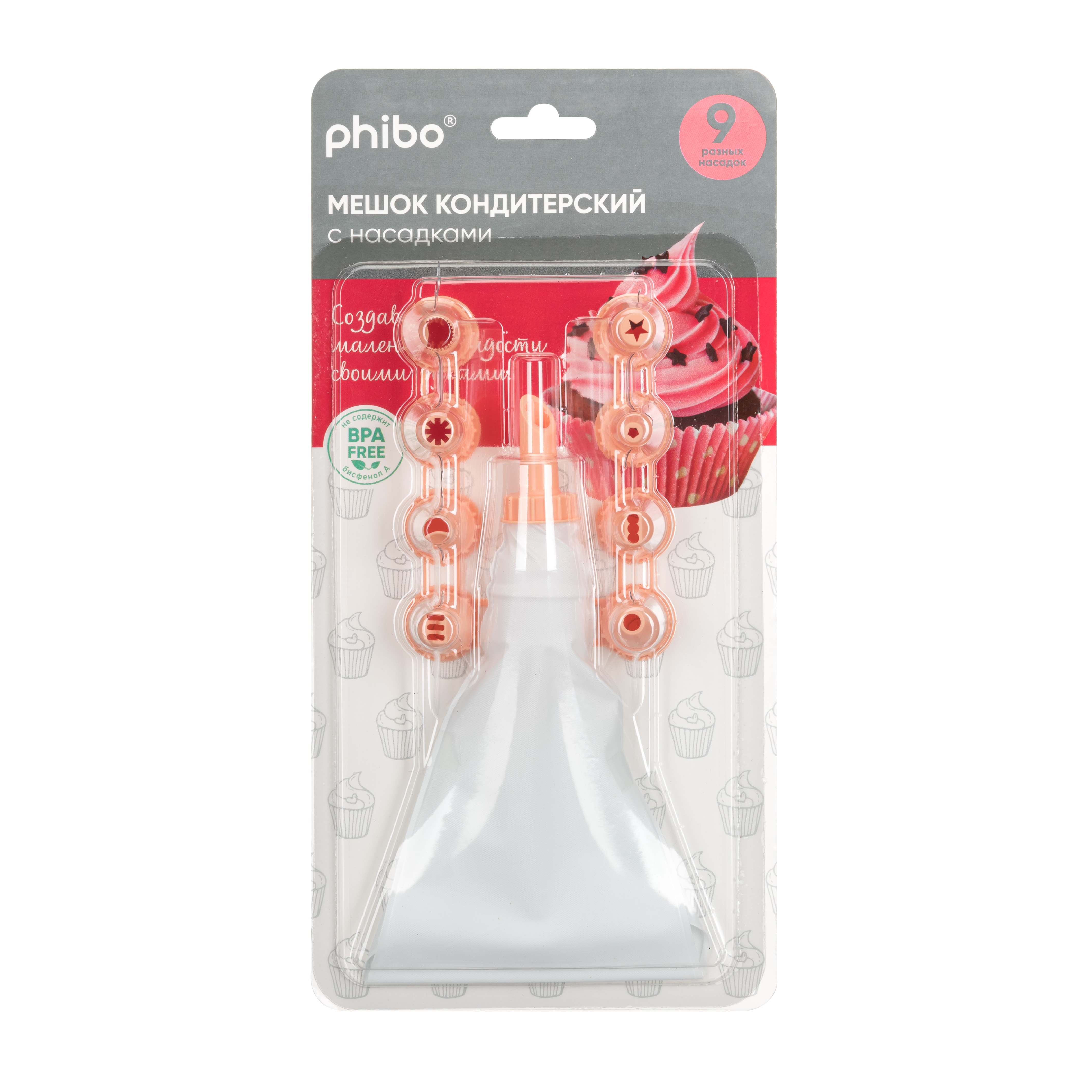 Мешок кондитерский 9 насадок "Phibo" арт.41112600008 ("Бытпласт") *1/12