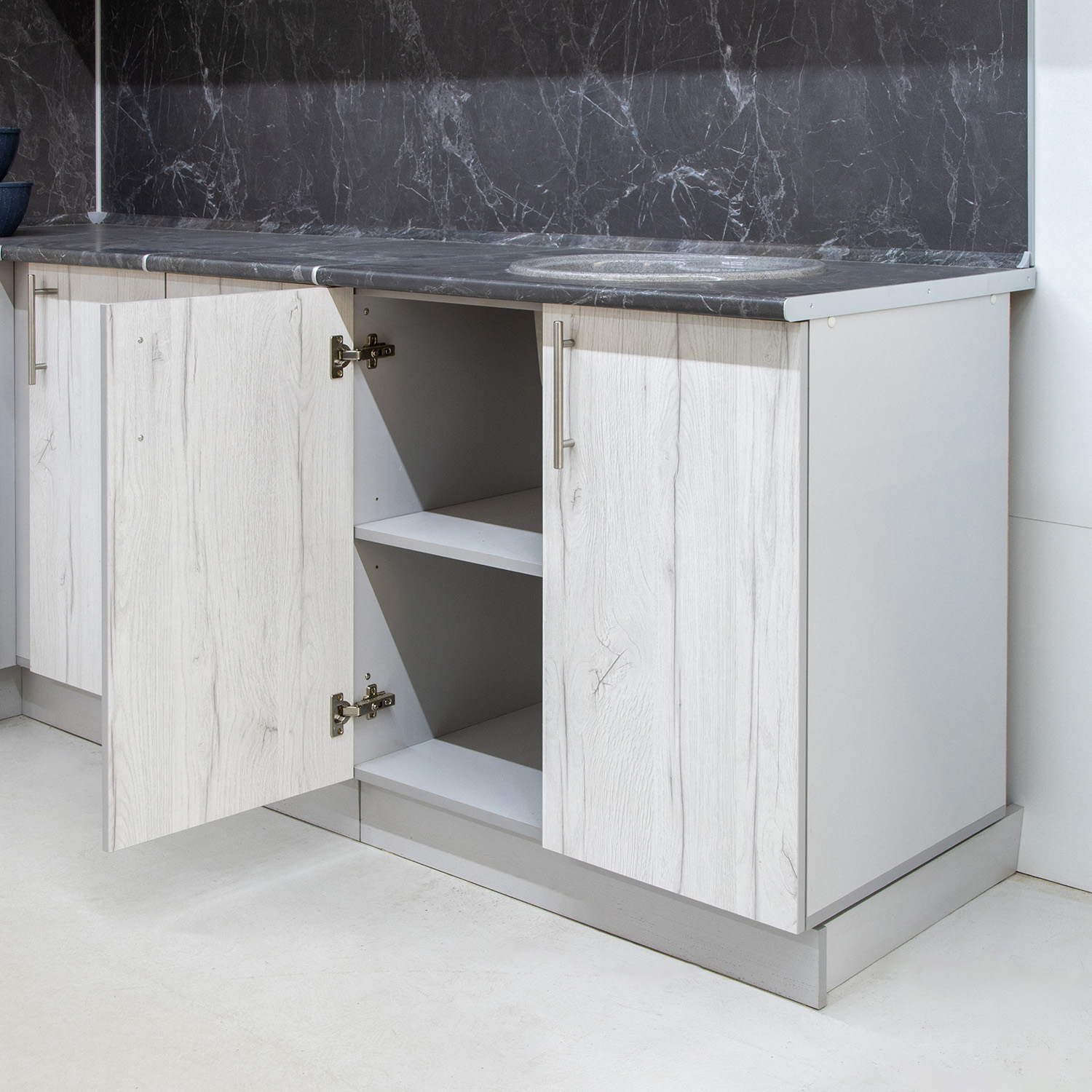 Шкаф напольный 800х850х600 мм BROZEX-WOOD Camellia, с двумя дверцами, серый / юта