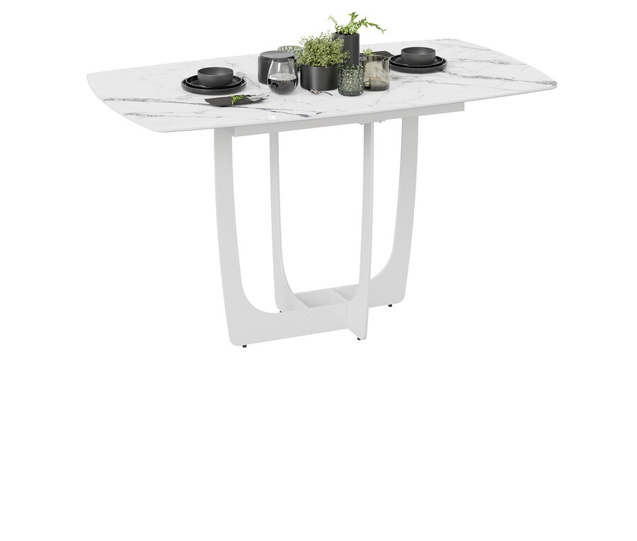Стол обеденный прямоугольный раздв.Орфей 1400(+400)*850*770мм Белый муар/стекло глян.белый мрамор*1