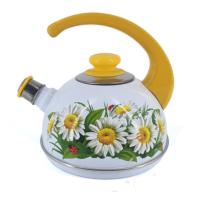 яяяЧайник эмалированный со свистком 2,5л декор "Марианна" Белый Т04/25/03/32/Н16 *1/4