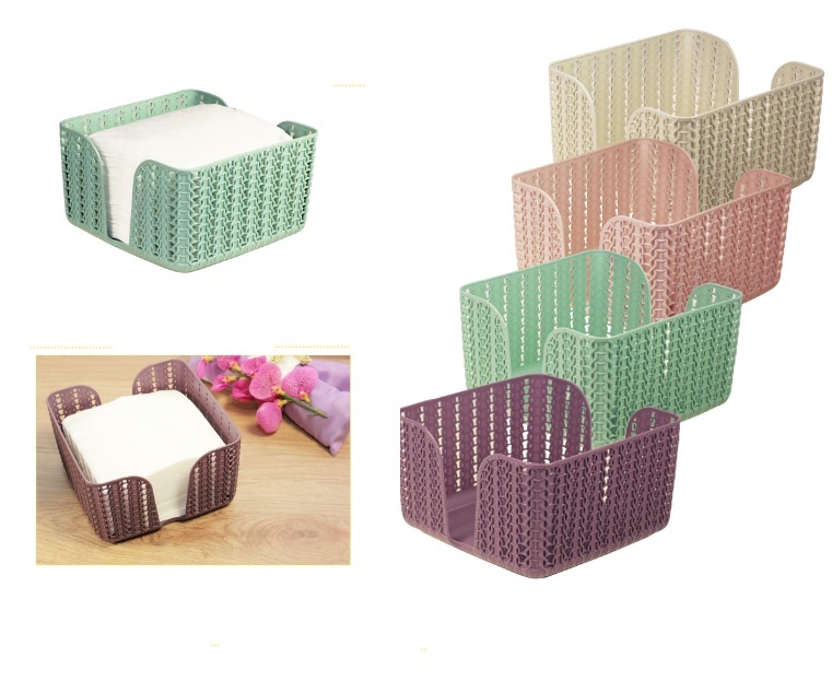 Салфетница пластм. "Вязание" 14,5х14,5х8,5см Белый ротанг М1193 ("М-Пластика") *1/16