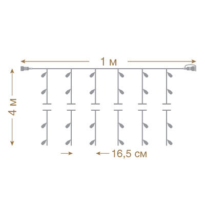 Для создания декоративной и праздничной иллюминации. Электрогирлянды формы "Занавес" предназначены как для внешнего, так и для внутреннего декорирования (рекламного освещения витрин, украшения окон, декорирования объемных объектов, арок и других архитектурных элементов).