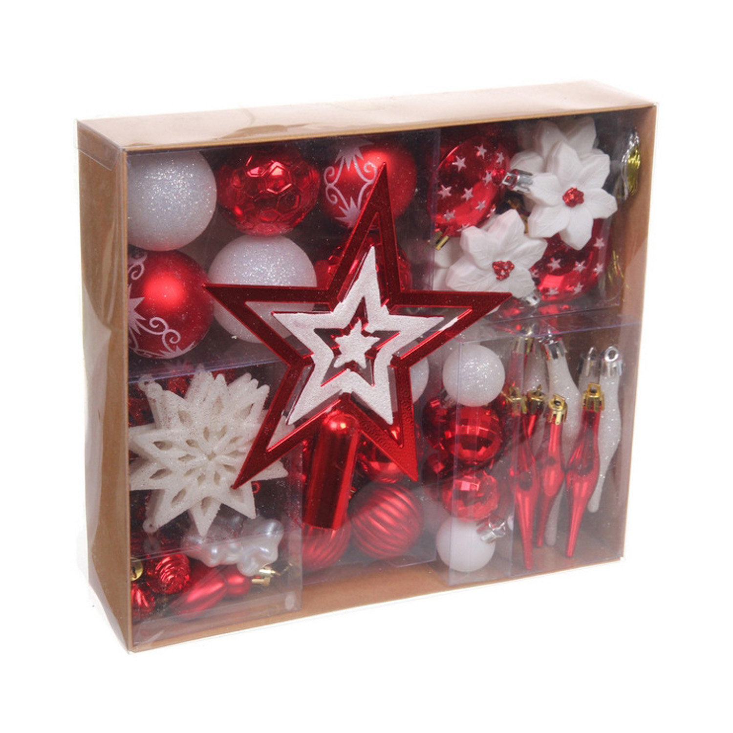 Набор ёлочных украшений "Сказочная зима" 45 предметов, Красный/Белый