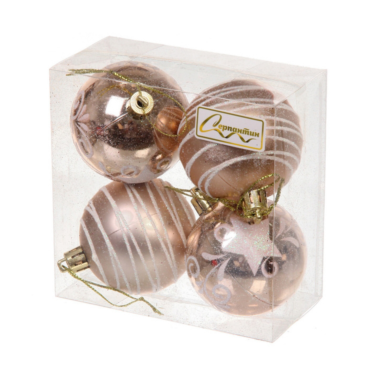 Новогодние шары 6 см (набор 4 шт) "Снежная дымка", Шампань