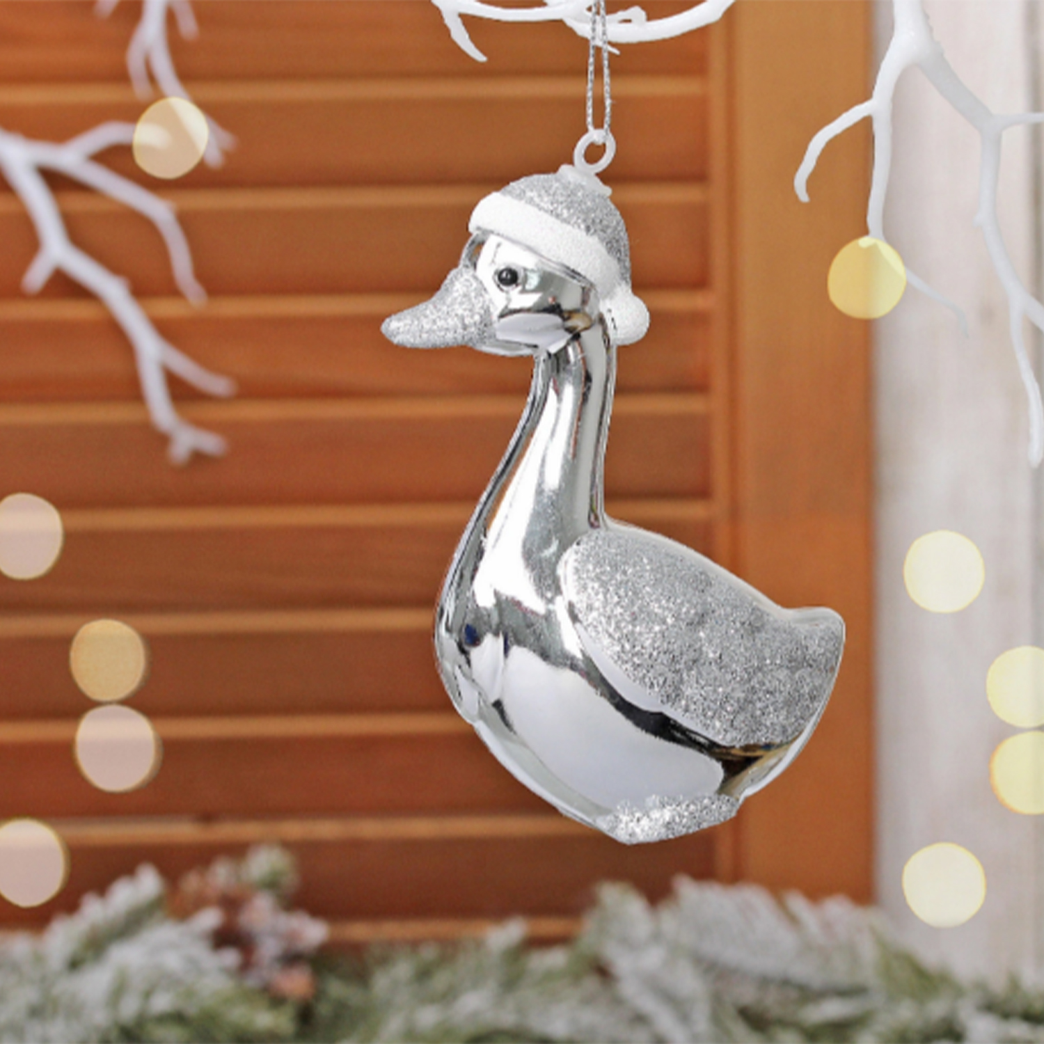 Ёлочная игрушка "Гусь" 7*5*10 см, Серебро