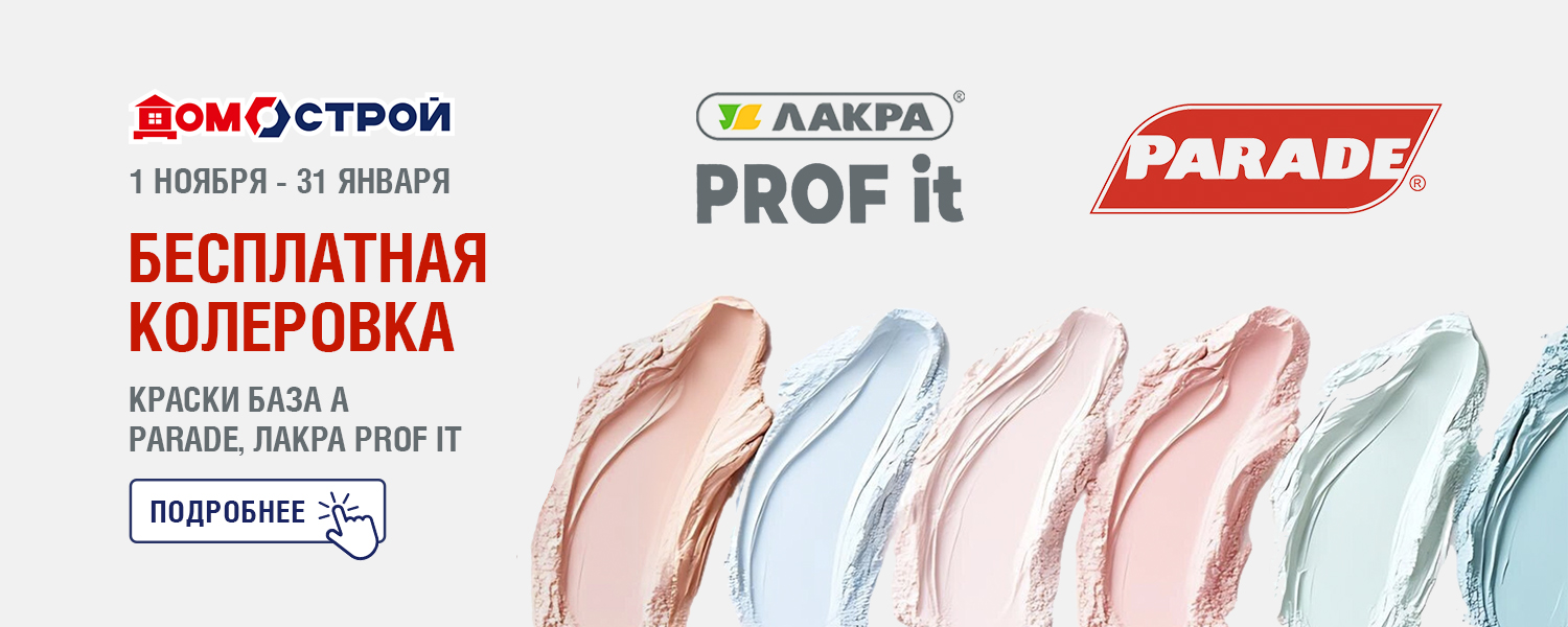 С 1 ноября 2025 по 31 января 2026 при покупке краски брендов Parade, Лакра (база А) - услуга колеровки по вееру ArtParade предоставляется бесплатно. Технология компьютерной колеровки поможет вам воплотить любую дизайнерскую задумку. Просто выберите идеальный оттенок из палитр «Светлая классика», «Нежная пастель» или «Элегантный нейтральный».