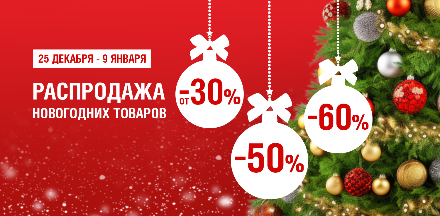 Подарите себе праздник вместе с Домострой! С 25 декабря по 9 января — тотальная распродажа новогодних товаров со скидками от 30%, 50% и 60%. Успейте выгодно купить ёлку, гирлянды и украшения, чтобы сделать свой дом по-настоящему праздничным и создать новогоднюю атмосферу!