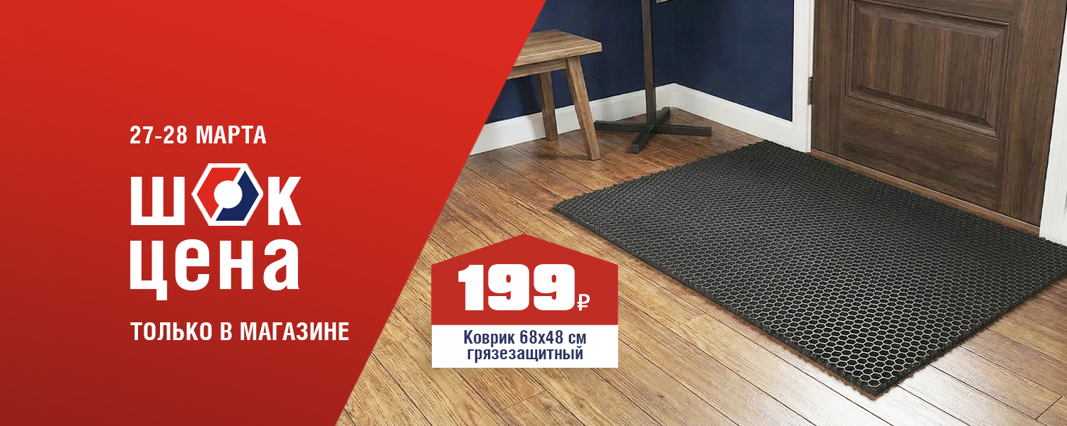 С первыми тёплыми днями в дом приходит не только весна, но и лужи, слякоть и мокрые следы на полу. Встретьте сезон во всеоружии! Грязезащитный коврик для входной зоны надежно задержит уличную влагу и песок, оставляя ваш пол идеально чистым. 27 и 28 марта в розничных магазинах ДомоСтрой не пропустите ШОК-цену: