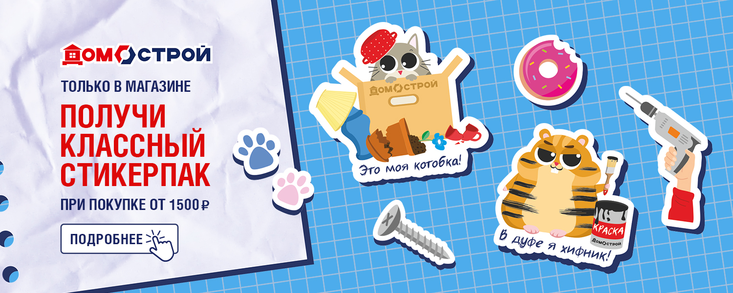 Акция действует 01.06.2025-15.06.2025 (или до окончания подарочных наклеек) только в розничных магазинах ДомоСтрой.