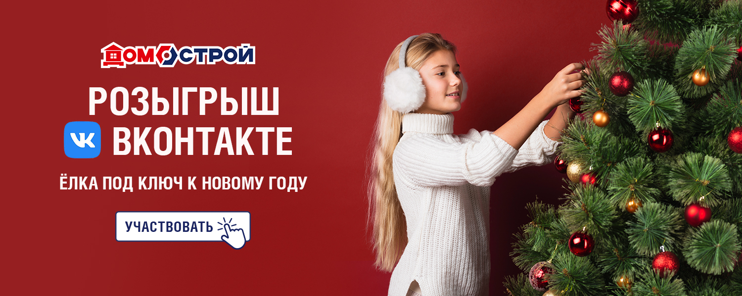 ДомоСтрой объявляет розыгрыш ёлки «под ключ» ВКонтакте. Участвуйте в конкурсе и выигрывайте готовый комплект из искусственной ели (арт. АЦ311), гирлянды (арт. ЕД691) и набора шаров (арт. ИБ542).